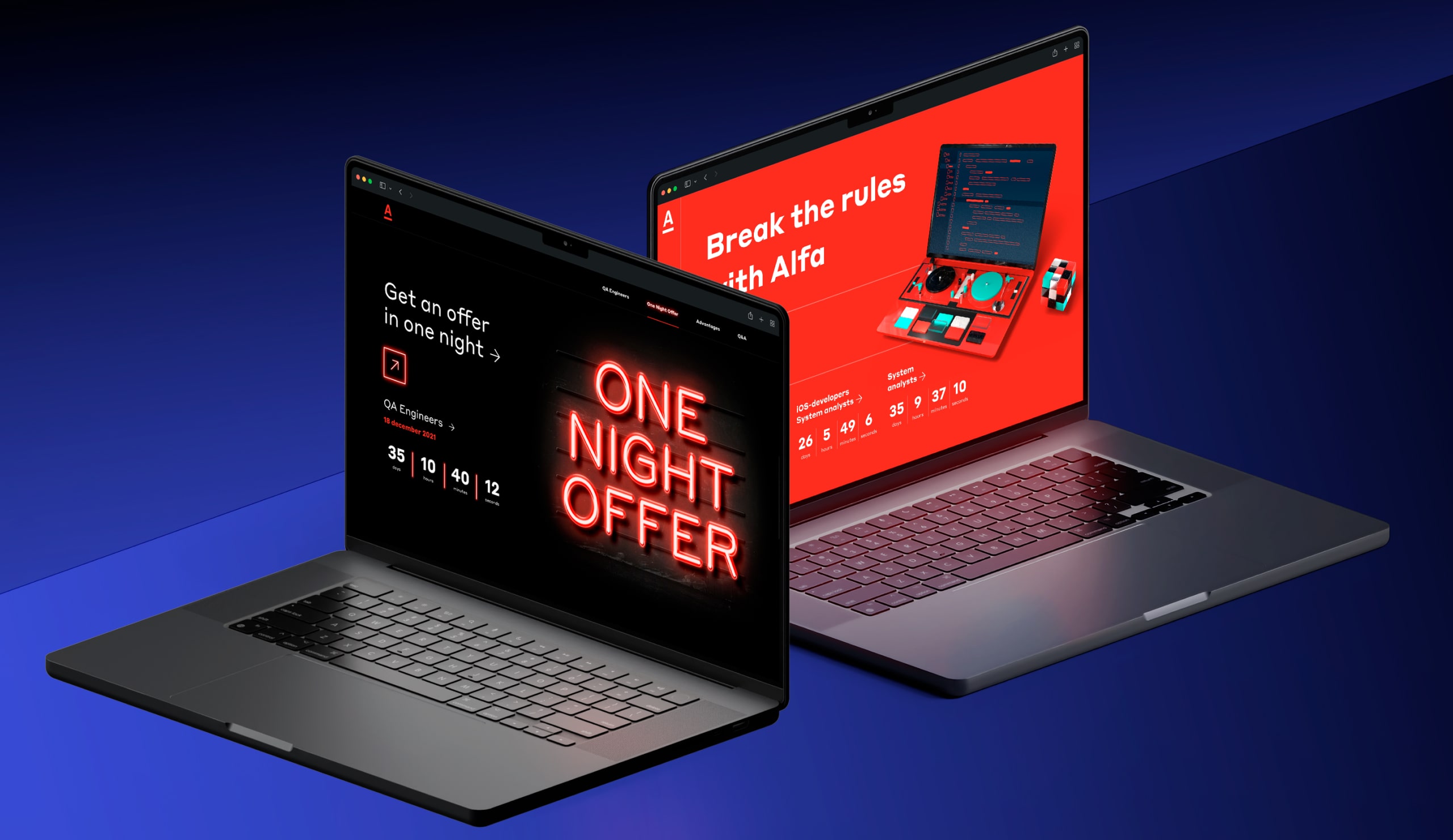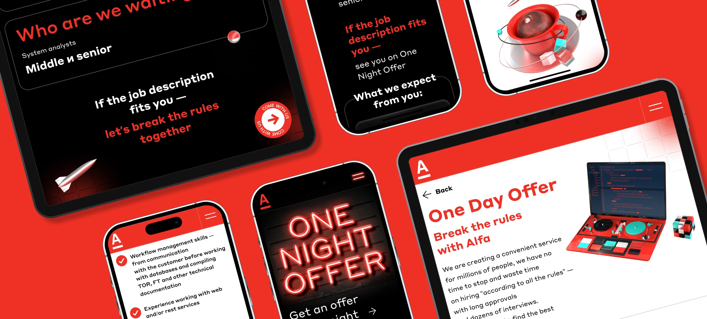 The creative concept of the One Day Offer online event was designed to break the stereotype of boring IT work and convey a new image of a modern employer: free, bold, open to innovation and disruptive solutions capable of breaking the stereotype even about the very process of the interview instead of several days and stages, just one bright event and an offer on the same day.