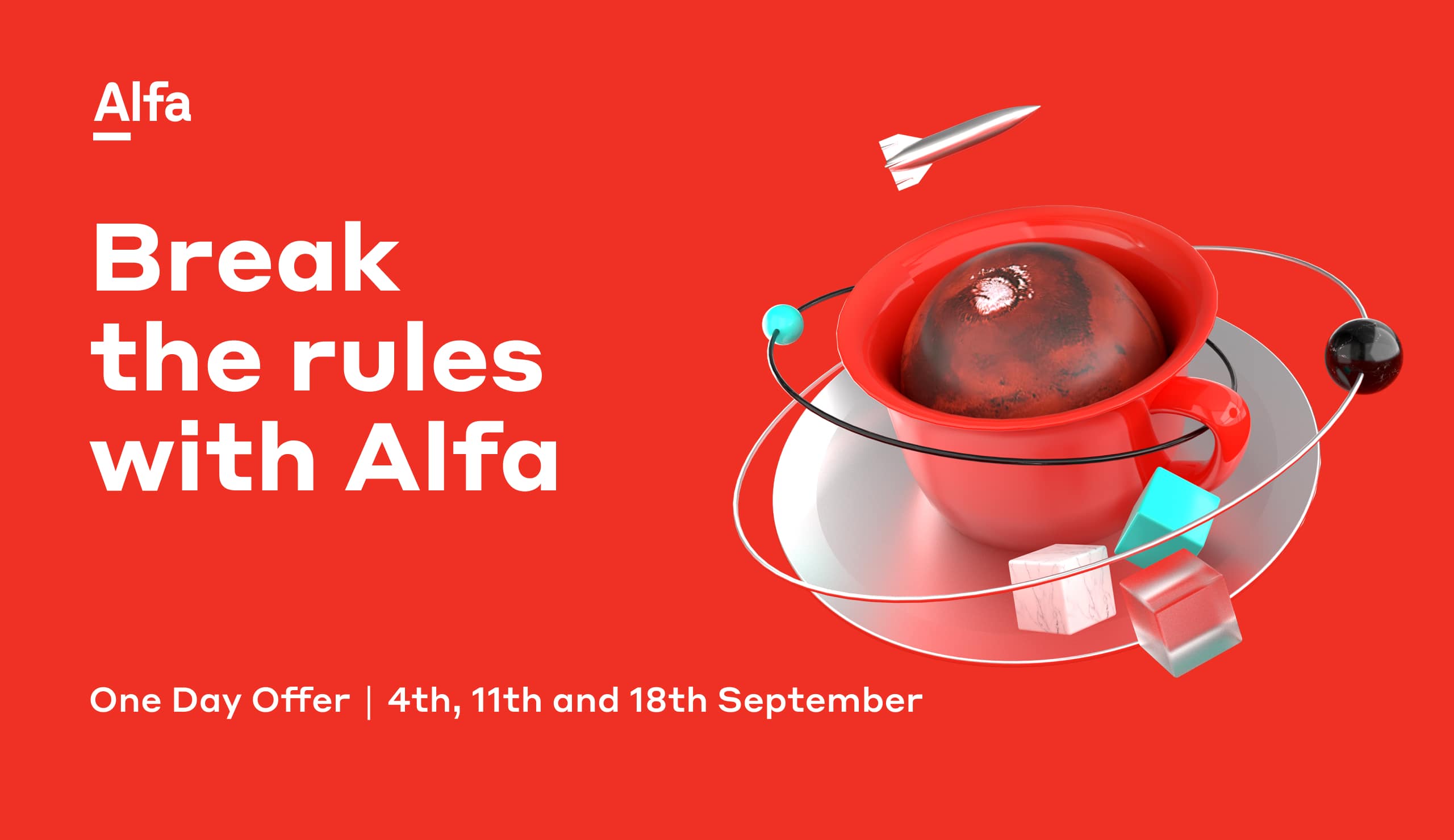 The concept was manifested in the slogan ‘Go red’, ‘Break the rules with Alfa’, which is based on opposition: Alfa sets new rules.