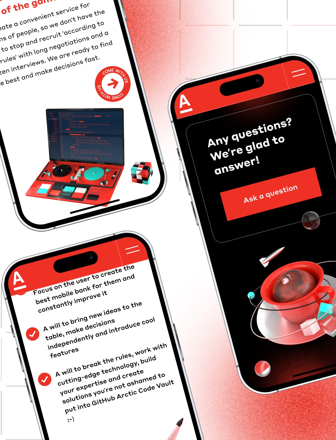 Alpha Group is considered to be one of the leaders of the IT- and FinTech industry on the market. It regularly competes for the best IT professionals. The challenge for us was to find a unique tool for quick and high-quality recruitment of employees for very demanding positions.