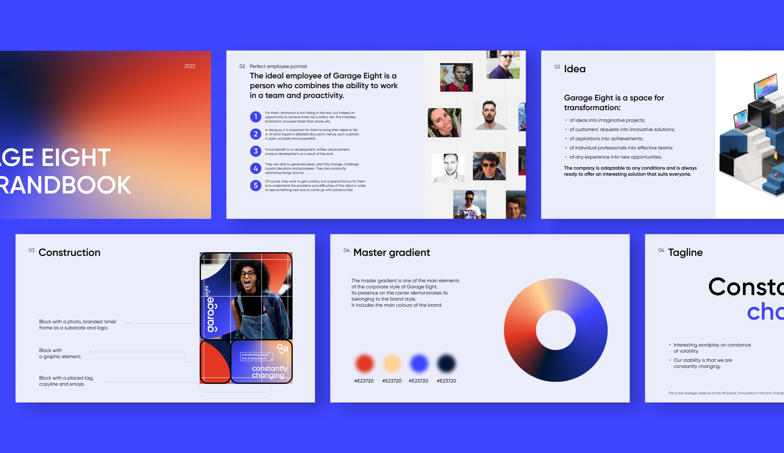 So we used Garage Eight’s modules and branded emojis as a reference to a transformer that is constantly changing. We also used the brand’s fluent gradient to highlight the flexibility and adaptability of the company.