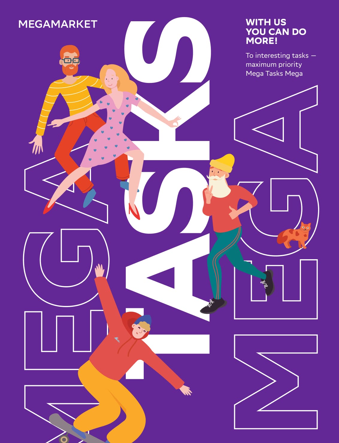 While developing brand positioning, we elevate people and make everything as hyperbolic as possible. We say that in MegaMarket you can do more than you think. Instead of simply working on the project, one influences it. We show that we aspire to become big leaders, and that we have a huge amount of tasks and projects. In general, our work is MEGAwork!